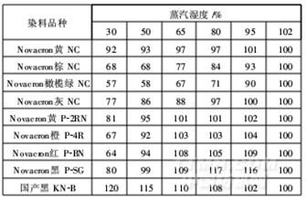 注:染料用量60g/kg,以蒸汽濕度102%時(shí)相對深度為100%計(jì),其它與其進(jìn)行比較而得。