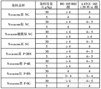 由表4知,NovacronNC染料的日曬牢度都很高。