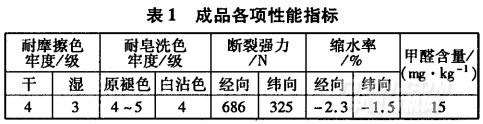 經(jīng)上述工藝處理后的寬幅純棉磨毛床上用品,各項(xiàng)性能指標(biāo)見表1。