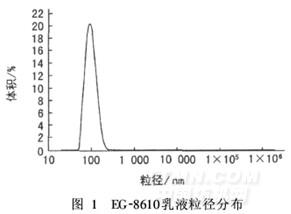 采用激光粒度儀測定EzGard EG-8610乳液粒分布,結(jié)果如圖1所示。