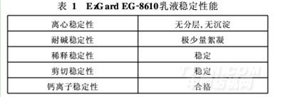 EzGard EG-8610乳液的各項穩(wěn)定性能指標表1。