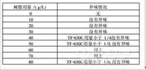 表2 TF-630C不同用量對布面異味的影響
