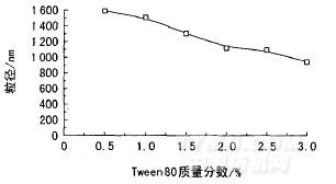 圖2Tween80用量與乳液粒徑的關(guān)系