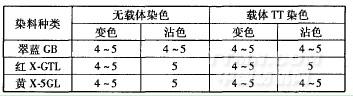 表3載體TT對(duì)腈氯綸染色織物色牢度的影響/級(jí)
