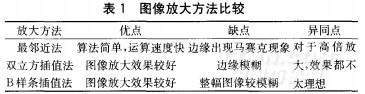 目前采用的圖像放大方法,如最鄰近法、雙立方插值、B樣條插值等高倍放大后效果都不理想,不能滿足軟家裝個性化定制生產(chǎn)需要,其優(yōu)缺點比較如表1所示。