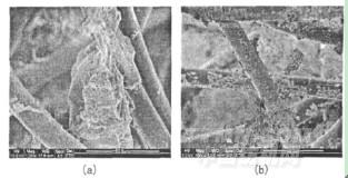 圖1發(fā)光材料在織物表面的電鏡照片