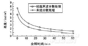 注:夜光涂層漿超聲波振蕩條件:溫度25℃,超聲波每次處理時間2s,間隔5s,全程時間30min。
