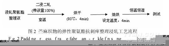 圖 2 苧麻織物的彈性聚氨酯抗刺癢整理浸軋工藝流程