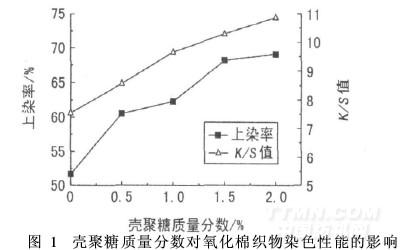 2. 1. 2 殼聚糖質(zhì)量分?jǐn)?shù)對氧化棉染色性能的影響