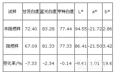 2.2.2 阻燃整理對(duì)織物白度和色光的影響