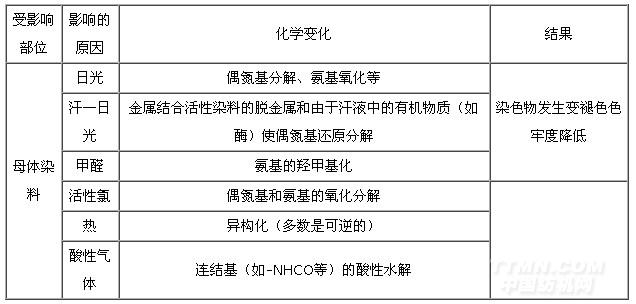 表二 活性染料染色物發(fā)生色牢度問題的原因