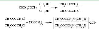 含羰基聯(lián)結(jié)基的陽離子型Gemini表面活性劑包含較多種類,聯(lián)結(jié)基包含酯基、酰胺基等.高志農(nóng)[27]等以氯乙酰氯、乙二醇、長鏈叔胺為原料,合成了一系列含有羰基聯(lián)結(jié)基的陽離子型Gemini表面活性劑,羰基聯(lián)結(jié)基部分與周圍原子構(gòu)成雙酯基.用乙酸乙酯與乙醇的混合溶劑[V(乙酸乙酯)∶V(乙醇)=5∶1]對反應(yīng)產(chǎn)物重結(jié)晶3次,得到白色粉末狀產(chǎn)物,反應(yīng)式為: