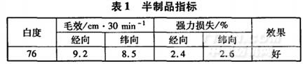 預定形是保證成品門幅穩(wěn)定和良好彈性的關(guān)鍵工序。定形溫度過高會破壞PBT纖維彈性,影響面料手感。通過試驗,對比手感、彈性、水洗尺寸變化等指標,選擇最佳定形溫度為170oC,定形時間為30s。