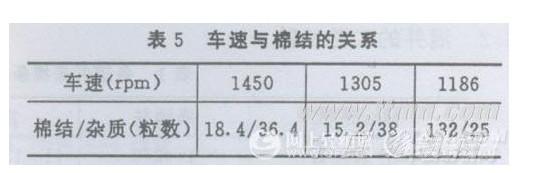 由試驗結(jié)果看,隨著車速低棉結(jié)粒也隨之降低,這是因為車速低可使纖維與金屬間的動摩擦系數(shù)降低,減少纏花,減少羅拉與纖維間的相對滑動而形成棉結(jié)。在保證生產(chǎn)供應的前題下,各混并下調(diào)一檔速度。