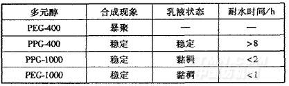 表1不同多元醇合成反應(yīng)的現(xiàn)象及性能