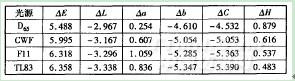 選取竹炭纖維織物JL一275版中有代表性的深綠地色,以純棉布為標(biāo)樣,電腦測(cè)色系統(tǒng)提供的顏色特征值對(duì)比見(jiàn)表6。
