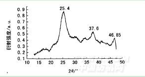 對TiO2溶膠干燥研磨后制得的白色粉末進(jìn)行X射線衍射(XRD)分析,衍射圖譜如圖1。