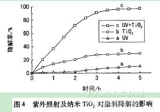 納米TiO2負載薄膜的光催化降解性能見圖4。