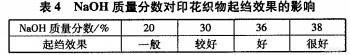 表4中,NaOH質(zhì)量分?jǐn)?shù)為38%,印花織物起縐效果很好。