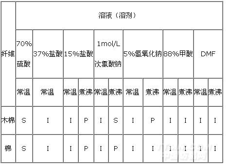 取少量木棉和棉纖維置于小燒杯中,用常用的纖維鑒別試劑按FZ/T 01057.4—2007[4]進行試驗,結果如表1。
