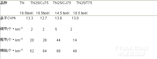 表3-4細(xì)紗質(zhì)量水平(TN ,TN25/CJ75 )