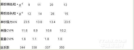 工藝調(diào)整后,細(xì)紗的各項指標(biāo)均有好轉(zhuǎn)。適當(dāng)減小細(xì)紗后區(qū)牽伸倍數(shù),發(fā)揮主牽伸區(qū)的作用,有利于提高細(xì)紗的條干水平。但如果后區(qū)牽伸過小,就會增加主牽伸區(qū)的負(fù)荷,容易發(fā)生“吐硬頭”現(xiàn)象,使粗紗不易被牽伸開來。所以在牽伸分配時,應(yīng)該考慮主牽伸區(qū)的牽伸能力,在主牽伸能力允許范圍內(nèi),適當(dāng)減小后區(qū)牽伸,才能起到降低條干水平的作用。否則,就會適得其反,不僅條干得不到改善,而且還會造成細(xì)紗生活不好做。