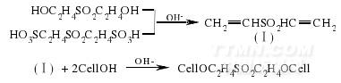 最初是20 世紀(jì)60 年代由BASF 公司作為交聯(lián)染料Basazol(含磺酰基的活性染料)的固色劑而推出的,其商品牌號(hào)為固色劑P.[2]41FAP 可以在堿性條件下打開(kāi)雙鍵,在交聯(lián)染料和纖維素分子之間發(fā)生共價(jià)交聯(lián),可大大提高染料的固色率和色織物的濕處理牢度.除用于棉織物的交聯(lián)染色外,FAP 也可用于尼龍織物和羊毛織物的交聯(lián)染色過(guò)程.采用4%(owf) FAP 交聯(lián)染色羊毛,竭染率98%、反應(yīng)率100%、固色率98%,染色后織物的水洗牢度4~5 級(jí),汗?jié)n牢度4~5 級(jí),日曬牢度5 級(jí),染色性能較傳統(tǒng)染色法有很大提高.[27]后來(lái),FAP 被用于織物抗皺整理中.在整理浴中添加芒硝、氯化鈉,經(jīng)濕式處理,棉布可獲得較高的干防皺性和優(yōu)良的防縮效果.FAP 的主要缺點(diǎn):(1)對(duì)纖維的直接性差,用作固色劑時(shí)只適于軋染和印花;(2)水溶性差,尤其是在低溫條件下溶解困難.[2]41D M Lewis[28]通過(guò)加入氨水的方法解決了該交聯(lián)劑的溶解問(wèn)題,并將其用于棉織物抗皺整理.研究表明,FAP 可在堿性條件下通過(guò)浸軋→烘干→汽蒸工藝與纖維素分子交聯(lián),免燙效果不低于2D 樹(shù)脂,其DP 級(jí)甚至高于2D 樹(shù)脂.[2]41