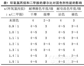2.1.1環(huán)氧氯丙烷和二甲胺的摩爾比對固色劑性能的影響
