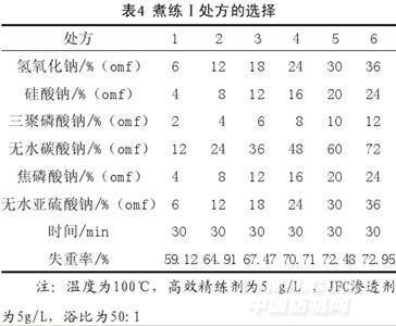 (1)NaOH用量對煮練效果的影響