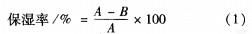 墨水保濕性能取lmL墨水置于燒杯中,稱初重后,在室溫條件下放置,自然蒸發(fā)至重量不再發(fā)生變化時(shí)稱重為A,然后7O℃烘至恒重時(shí)稱重為曰,按式(1)計(jì)算保濕率: