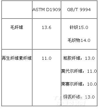 我國標(biāo)準(zhǔn)明確規(guī)定,纖維重量百分含量應(yīng)結(jié)合公定回潮率計(jì)算。雖然美國標(biāo)準(zhǔn)中沒有明確的要求,但檢測機(jī)構(gòu)出具的報告還是結(jié)合公定回潮率進(jìn)行計(jì)算的。由于兩國的標(biāo)準(zhǔn)體系中公定回潮率的不同,可能會導(dǎo)致結(jié)果的差異,所以在計(jì)算時一定要選擇正確的回潮率值。兩種典型的纖維回潮率比較見表 4。