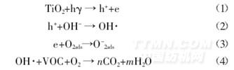 在原位復(fù)合法中,采用溶膠-凝膠技術(shù)制備穩(wěn)定的納米TiO2溶膠,再對織物進(jìn)行涂層或浸軋?zhí)幚?然后在一定條件下實(shí)現(xiàn)光催化劑在織物上由無定形態(tài)轉(zhuǎn)化為定形態(tài),光催化劑晶型轉(zhuǎn)換需要在200~300 ℃下才能實(shí)現(xiàn),由于大部分纖維織物不耐高溫,限制了此法的應(yīng)用.實(shí)現(xiàn)光催化劑在低溫下完成晶型轉(zhuǎn)化是當(dāng)前研究的熱點(diǎn).何瑾馨等人在國內(nèi)率先開展了這方面的研究,已經(jīng)取得了一定的成效,實(shí)現(xiàn)了TiO2在織物上100 ℃以下從無定形態(tài)向高活性的銳鈦礦型的轉(zhuǎn)換.