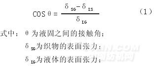 紡織物是一個多孔性體系,有無數相互連通、大小不同的毛細管,具有典型的毛細管效應。液體在毛細管中上升的液柱靜壓P存在下列關系: