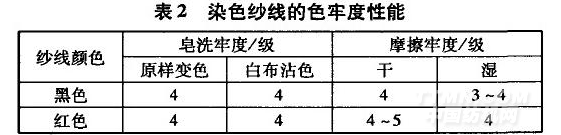 抽取黑色和紅色品種紗進行色牢度測試(表2)。
