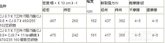 表5 交織坯布產(chǎn)品主要質(zhì)量指標