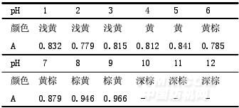 茶葉色素隨pH的不同,其顏色會發(fā)生不同變化,當pH<5時,色素溶液為淺黃色;當pH=6、7時,色素溶液為黃棕色;pH>8時,色素溶液近深棕色,茶葉特征顏色基本消失。其吸光度隨著pH的增加而呈波動態(tài),說明溶液的pH對色素穩(wěn)定性影響非常明顯,可能是由于色素的分子結構發(fā)生了轉變。為了使色素溶液保持正常的顏色,溶液的pH應維持在近中性偏弱酸條件下。