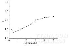圖4Gly-Gly-MIPMs在不同濃度Gly-Gly溶液中的β