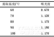 表2不同溫度提取石榴皮色素的吸光度