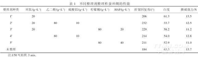 不同整理劑整理柞蠶絲綢的性能見表1.