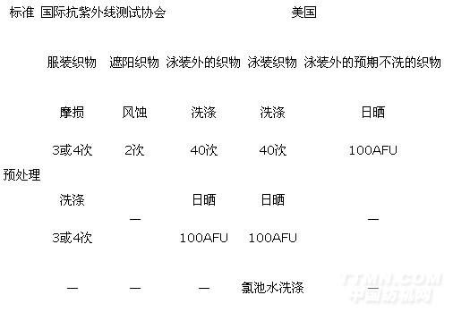 表1 國(guó)際抗紫外線測(cè)試協(xié)會(huì)和美國(guó)預(yù)處理的過(guò)程