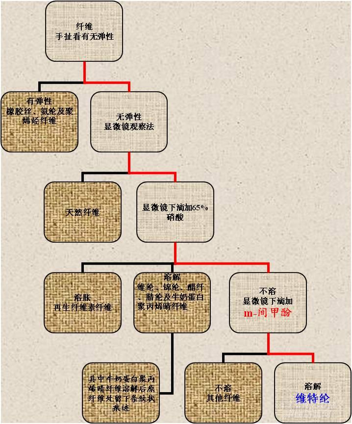 通過上圖可以看出,我們通過感官法→顯微鏡觀察法→溶解性實驗法,期間還可輔以燃燒法、熔點法和紅外吸收光譜法,一步一步排除其他纖維,成功達到了鑒別維特綸與其他纖維的目的。