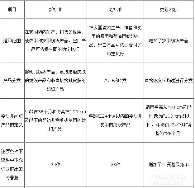 GB 18401—2003《國(guó)家紡織產(chǎn)品基本安全技術(shù)規(guī)范》(以下簡(jiǎn)稱老標(biāo)準(zhǔn))的實(shí)施為我國(guó)紡織產(chǎn)品的生產(chǎn)、銷售、使用和監(jiān)督提供了統(tǒng)一的技術(shù)依據(jù),對(duì)于有效保護(hù)我國(guó)紡織消費(fèi)者的健康,規(guī)范市場(chǎng)以及提高我國(guó)紡織行業(yè)的整體水平和國(guó)際競(jìng)爭(zhēng)力發(fā)揮了重要作用。將于2011年8月1日實(shí)施的GB 18401-2010《國(guó)家紡織產(chǎn)品基本安全技術(shù)規(guī)范》(以下簡(jiǎn)稱新標(biāo)準(zhǔn))相比于老標(biāo)準(zhǔn),無(wú)論是指標(biāo)要求還測(cè)試方法,都有一些新的變化。條款規(guī)定更清楚,可操作性更強(qiáng),對(duì)紡織品企業(yè)在生產(chǎn)和銷售等環(huán)節(jié)都提出了更加嚴(yán)格的要求。認(rèn)真貫徹落實(shí)新標(biāo)準(zhǔn)將更有效的保護(hù)我國(guó)消費(fèi)者健康,引導(dǎo)紡織品生產(chǎn)銷售企業(yè)注重產(chǎn)品質(zhì)量,有助于提升我國(guó)企業(yè)市場(chǎng)競(jìng)爭(zhēng)力和積極應(yīng)對(duì)國(guó)外技術(shù)性貿(mào)易壁壘。為了更好的貫徹落實(shí)新的標(biāo)準(zhǔn),本文將新老標(biāo)準(zhǔn)作對(duì)比,詳細(xì)介紹新增的考核內(nèi)容和要求,并對(duì)重要考核指標(biāo)進(jìn)行解讀。