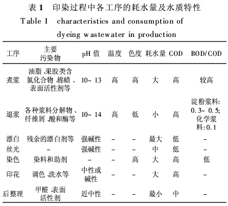 印染過程中各工序的排水情況及水質(zhì)特性如表1所示[8]。