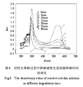 3.3初始濃度200mg/L印染廢水在外加電壓40kV、放電時(shí)間20min、電極間距8mm、通入空氣流量16L/h條件下,與絮凝劑PAC相互協(xié)同作用可達(dá)到96%的脫色率、63%的COD去除率.
