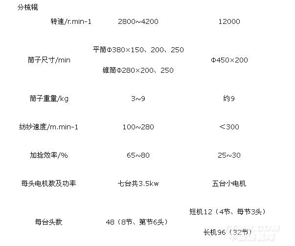 表9-4-1 塵籠式摩擦紡紗機(jī)的技術(shù)特征