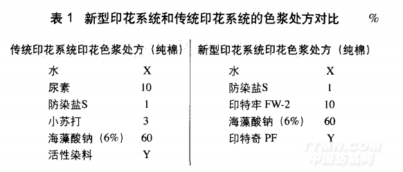 2.1 新型印花系統(tǒng)與傳統(tǒng)印花系統(tǒng)的工藝對比(表1)