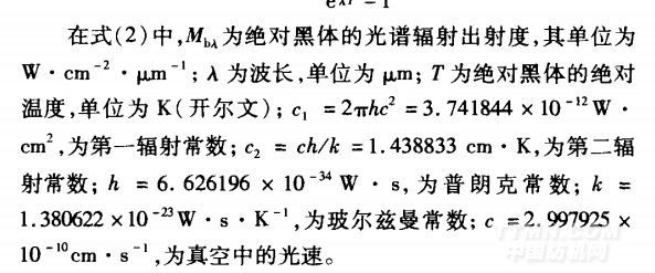 黑體又稱為普朗克輻射體或完全輻射體,屬于熱輻射(thermal radiation)或溫度輻射(temperature radiation)類型。能夠完全吸收任何波長(zhǎng)的入射輻射,并且具有最大發(fā)射率的物體稱為絕對(duì)黑體,可見黑體的光譜吸收比恒等于1。絕對(duì)黑體的光譜分布特性由普朗克公式給出,即 j: