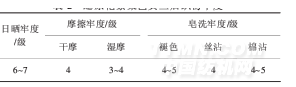 由表2可知,染色織物的干摩擦牢度為4級(jí),濕摩擦牢度為3~4級(jí),皂洗牢度≥4級(jí),日曬牢度達(dá)6~7級(jí).