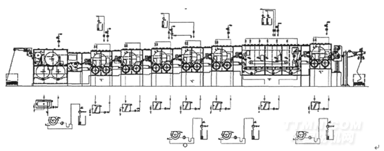 圖1為Goller(高樂(lè))連續(xù)平幅水洗機(jī)示意。