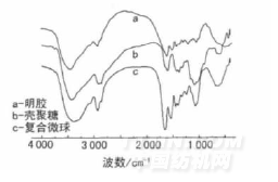 圖1明膠、殼聚糖及復合微球的紅外光譜